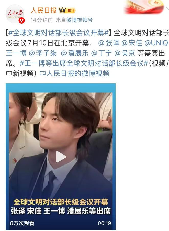 据《人民日报》报道慧眼智行,7月10日,全球文明对话部长级会议在北京开幕,张译、宋佳、王一博、李子柒、潘展乐、丁宁、吴京等嘉宾出席。