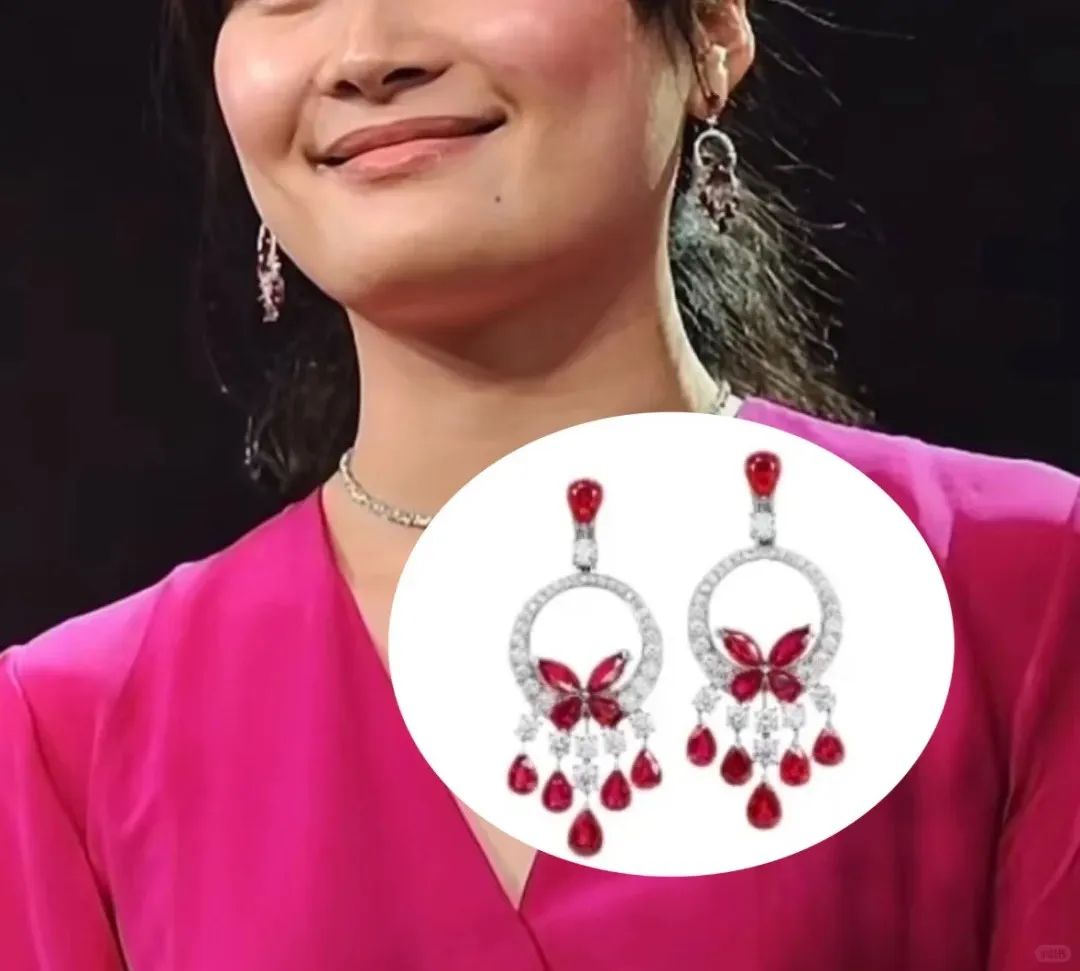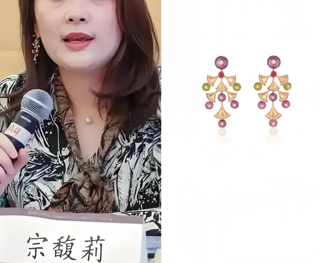 宗馥莉登上胡润榜的照片,戴的是尚美高珠黄钻白金耳环,价格在大几百万。