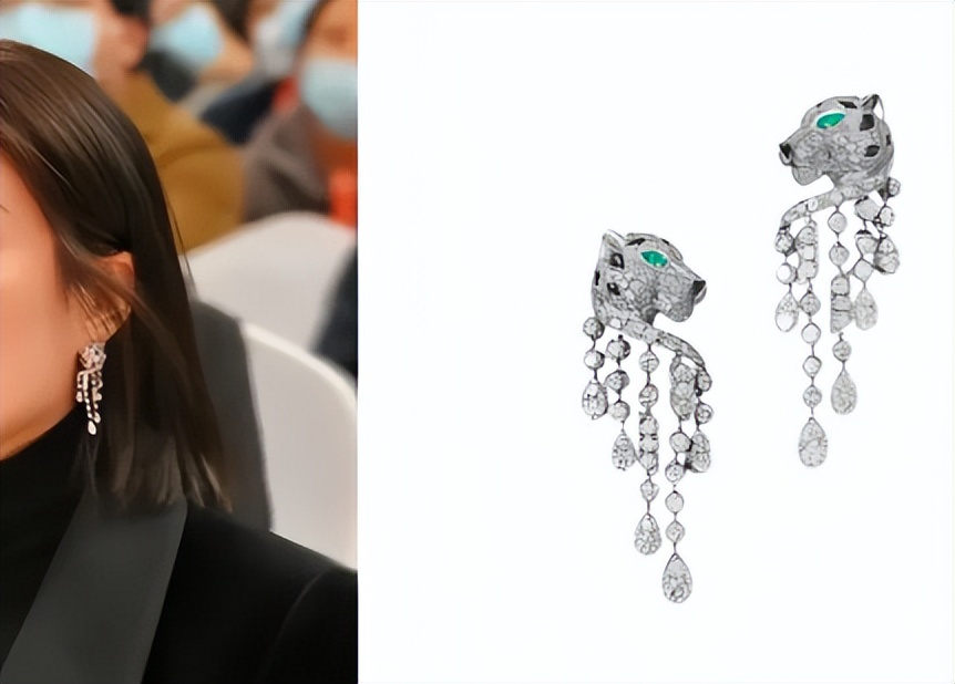 卡地亚猎豹胸针,148w;还有同系列耳环。