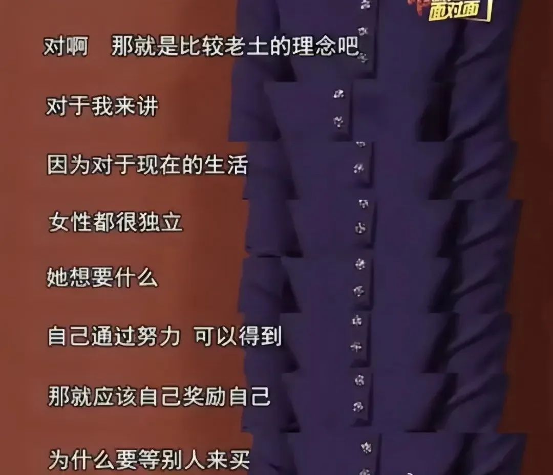 在此前的一段电视采访里,当主持人说道:「在很多女孩子的概念里,珠宝是要男朋友送的。」
